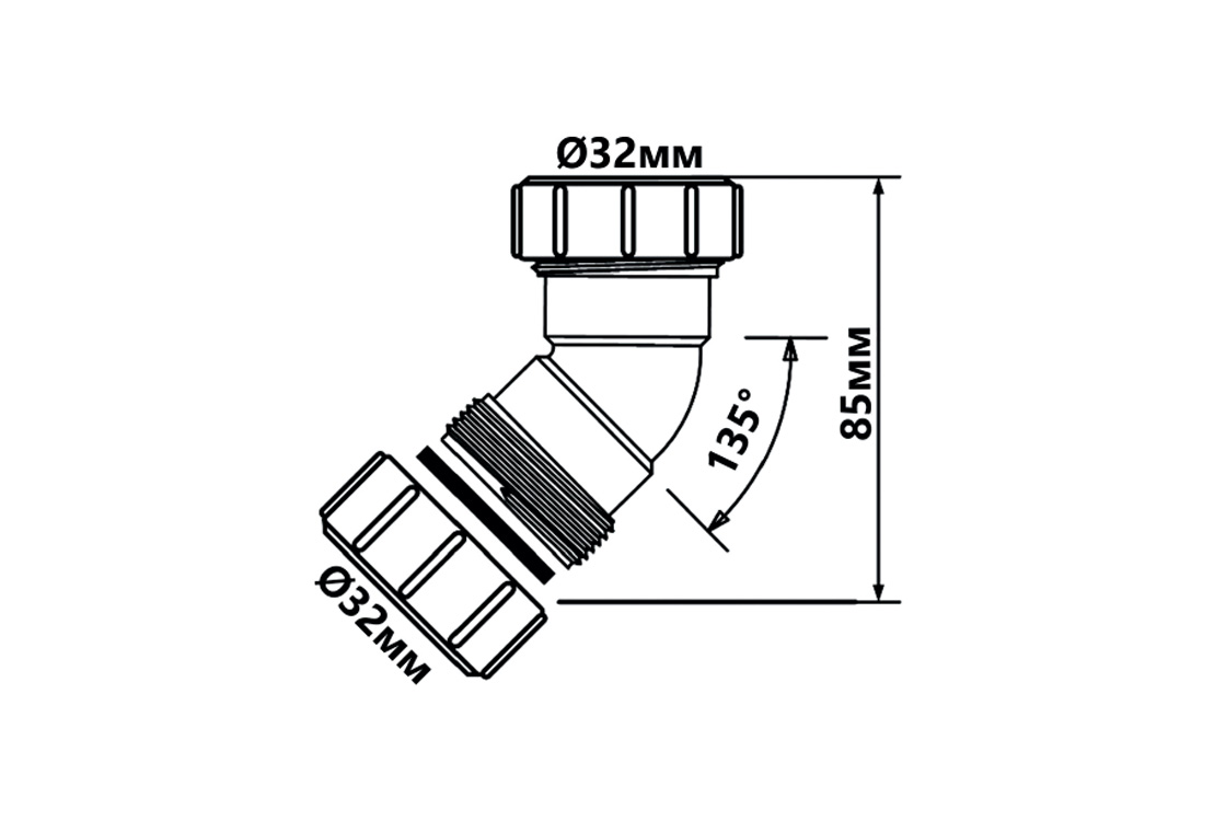 Коліно пластикове 45° ∅32 з гайками 32B-WH