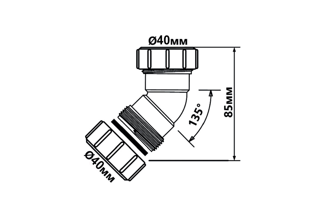 Коліно пластикове 45° ∅40 з гайками 40B-WH