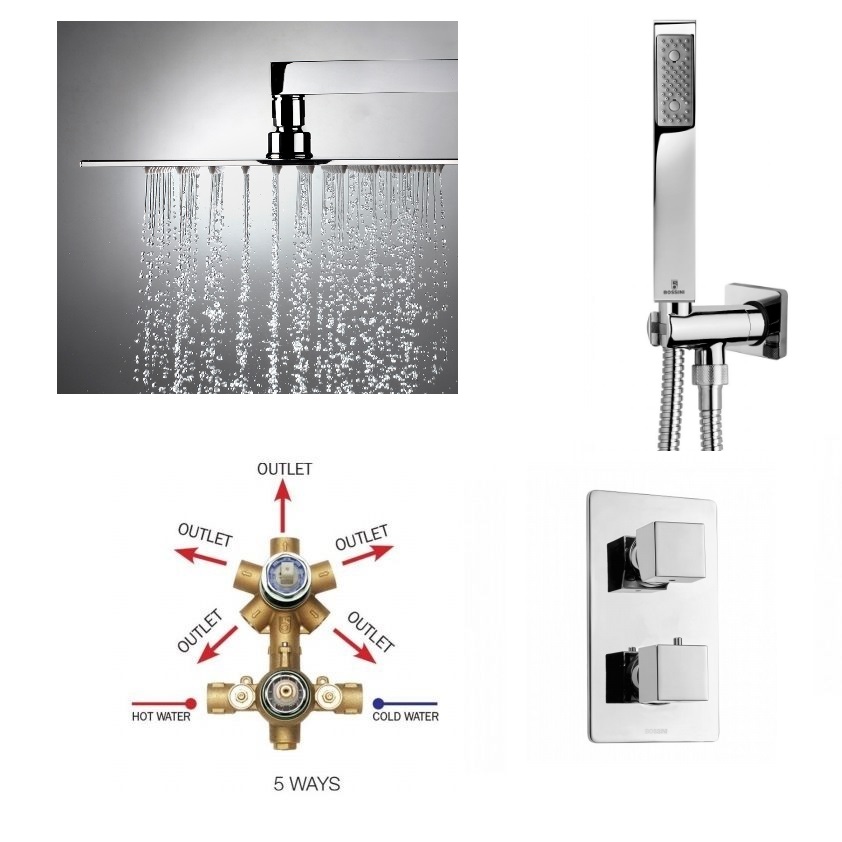 Універсальна вбудована частина термостатичного змішувача для душу Bossini, з дивертер на 2-5 виходів (Z00125000000005)