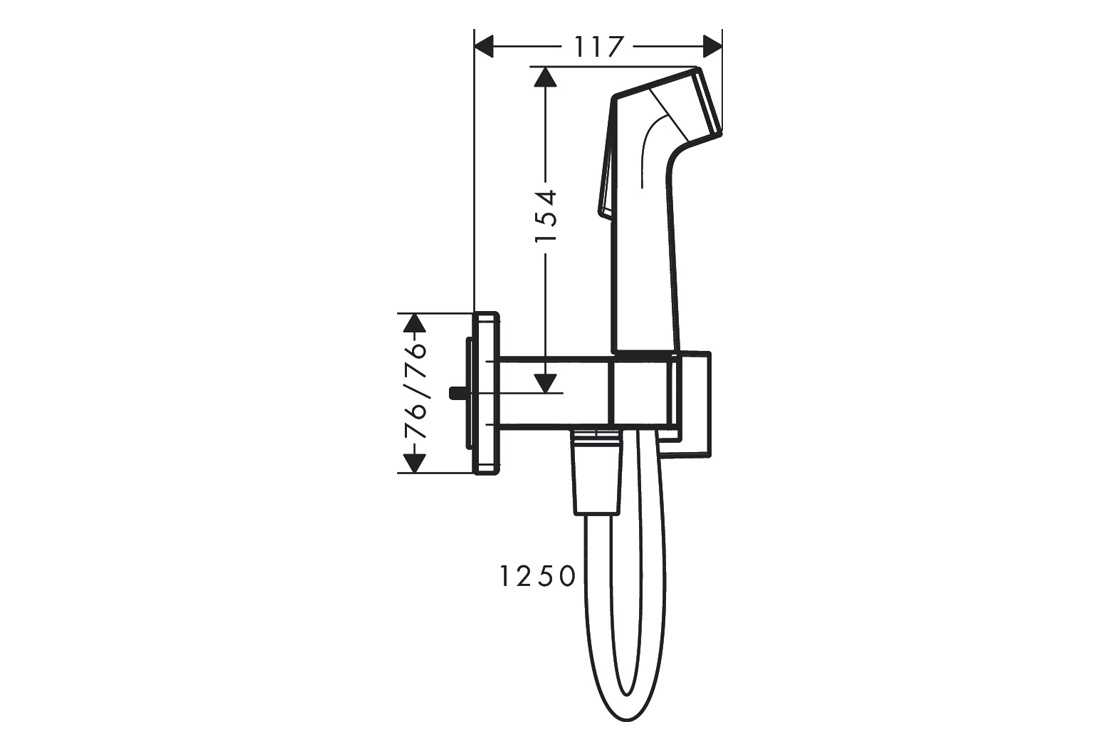 складається з: гігієнічного душу, запірного клапана з вбудованим тримачем для душу, душового шлангарозмір душової лійки: 28 мм;інтегрована функція підтримки;максимальна витрата при 3 барах: 6,2 л/хв;мінімальний тиск потоку: 1 бар;робочий тиск: хв. 1 бар/макс. 10 бар;поворотний з'єднувач запобігає заплутуванню шланга;для душових шлангів з конусною або циліндричною гайкою з обох сторін;зі зворотним клапаном;кріплення до стіни: гвинтове кріплення;сітка, що промивається;необхідне додаткове обладнання: прихована частина для гігієнічного змішувача (арт.29235180) (не входить в комплект).