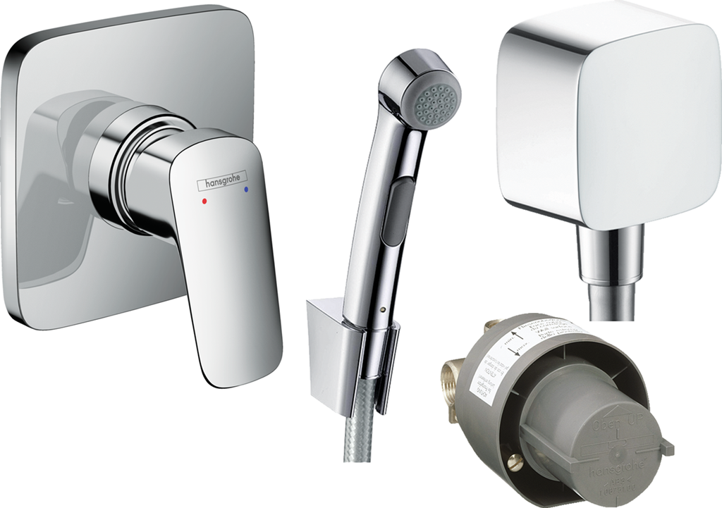 В набір входить:Змішувач Logis прихованого монтажу для душу (71604000)Прихована частина для одноважільного змішувача для душа (13620180)Гігієнічний душ зі шлангом 1,2 м та тримачем Chrome (32129000). Матеріал тримача для душу - пластикШлангове підєднання FixFit E зі зворотним клапаном Chrome (26457000)Витрати води при 3 барах: 28.7 л/хв.