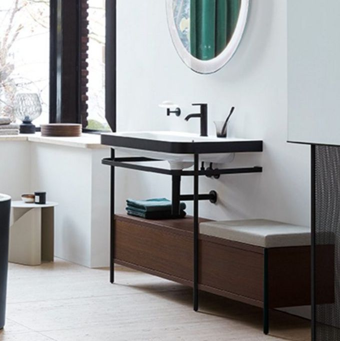 Рама c-bonded міцно склеюється з керамікою і поставляється разом з розібраної металевої консоллю в одній упаковці. Меблеві умивальники не поставляються з WonderGliss. Кераміка додатково кріпиться до стіни. Рекомендується декоративний сифон # 005036.