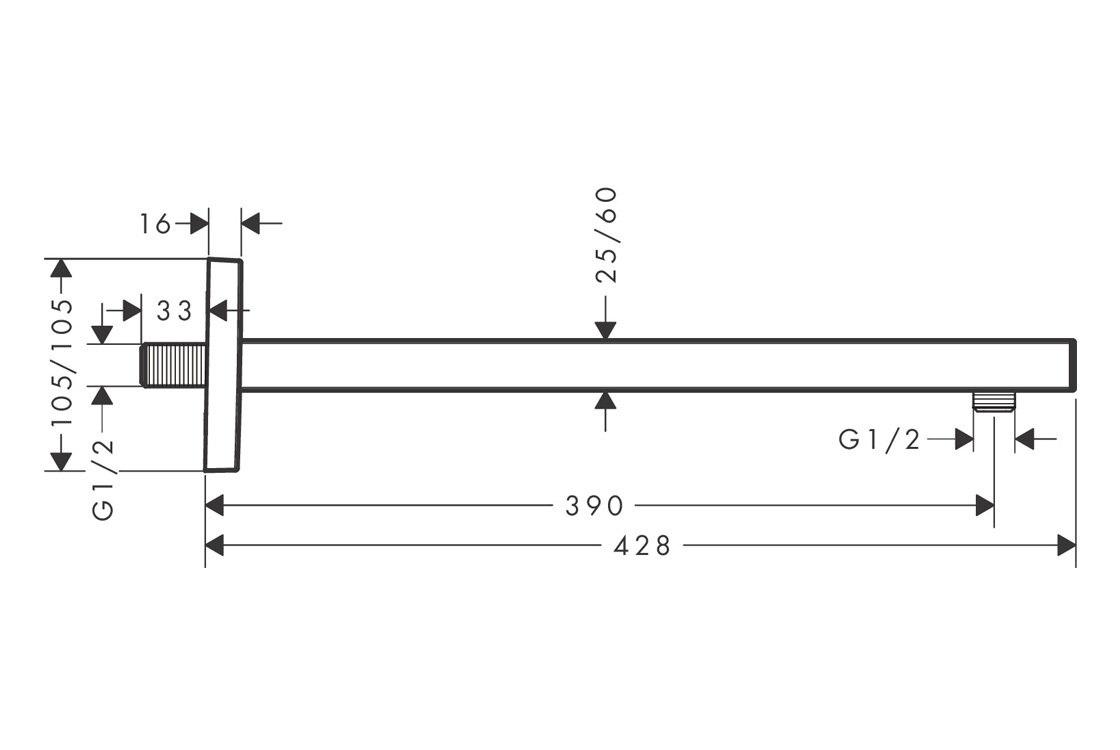 HANSGROHE Довжина: 390 мм, тип з'єднання: G ½