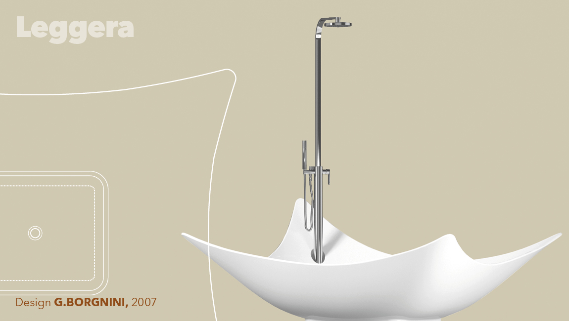 Дизайнерська ванна (дизайнер Джільда Боргніні) виготовлена з Pietraluce - міцного матеріалу, який не втрачає своєї краси під час зношування і характеризується малою товщиною та поєднанням квадратних форм із закругленими лініями. Pietraluce - це сполука гідратованого оксиду алюмінію і діоксиду титану, покрита товстим шаром поліефірної смоли ISo-NPG. Матеріал стійкий до кислот, розчинників та рідких засобів для чищення, має антибактеріальні властивості, негорючий і самозгасаючий. Подряпини або плями видаляються звичайною полірувальною пастою. Для чищення виробів з Pietraluce® слід використовувати м’які тканини та рідкі миючі засоби.Душова стійка комплектуєтсья окремо.