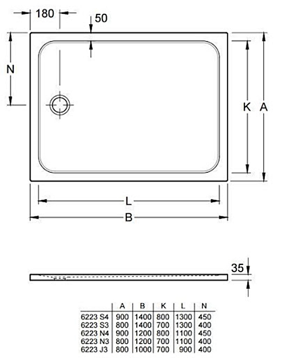 LIFETIME PLUS Піддон 1000х800х18 мм Ceramic® (6223J301)