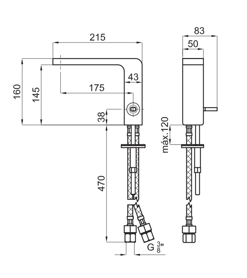 LOUNGE Змішувач для умивальника хромований: аератор / ефект каскаду / керамічний картридж d25мм / підключення 3/8" (100063524)