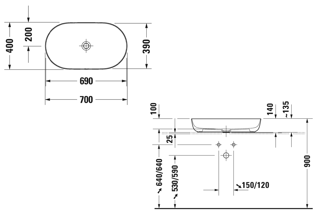 LUV Умивальник на стільницю 70x40 см (0379700000) білий
