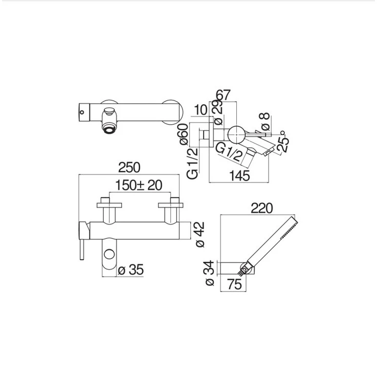 LV00110CR Змішувач для ванни з душовим комплектом хром Nobili ІТАЛІЯ