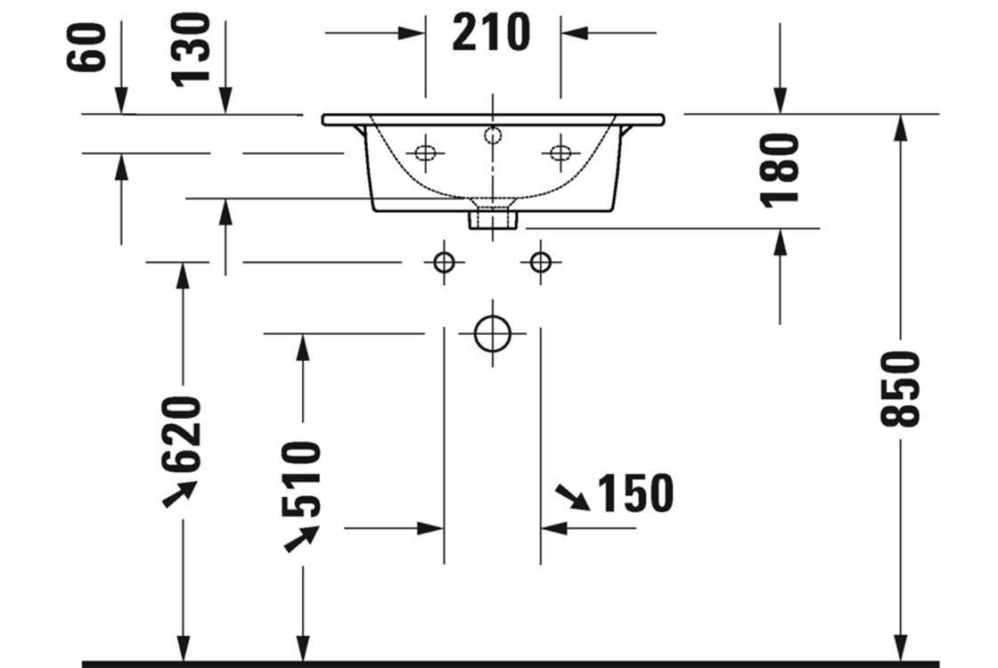 Умивальник меблевий, Умивальник врізний на стільницю, Умивальник підвісний