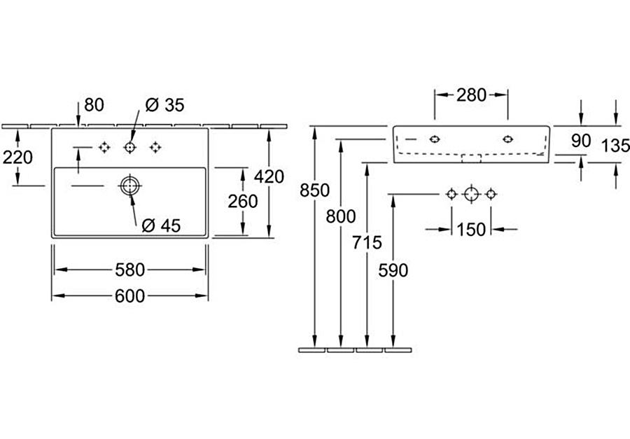 MEMENTO 2.0 Умивальник 600x420 мм (4A226001) Titan Ceram