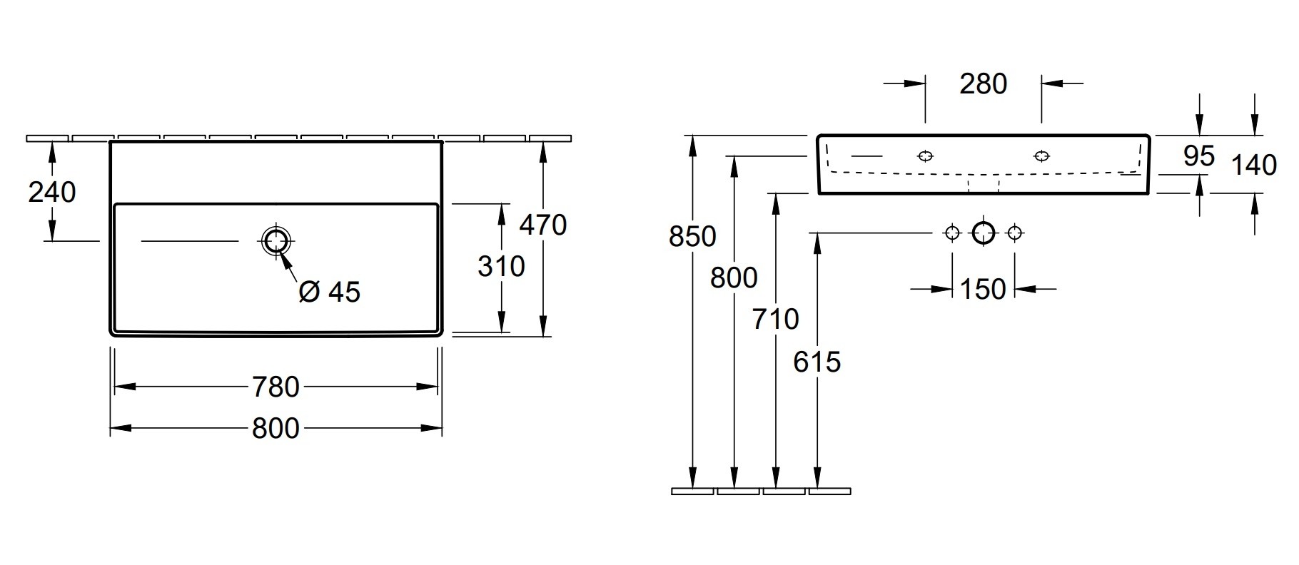 MEMENTO 2.0 Умивальник 800x470 мм без отвору під змішувач (4A228F01) Titan Ceram