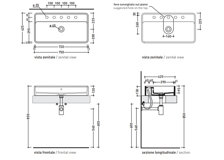 MINIWASH 75 Умивальник на стільницю 75х42 без отвору під змішувач (MW75PR)