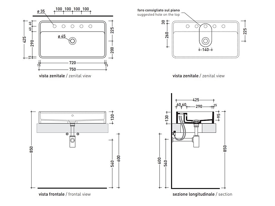 MINIWASH 75 Умивальник прямокутний 75х42 з 1 отвором під змішувач Latte (MW75PR)