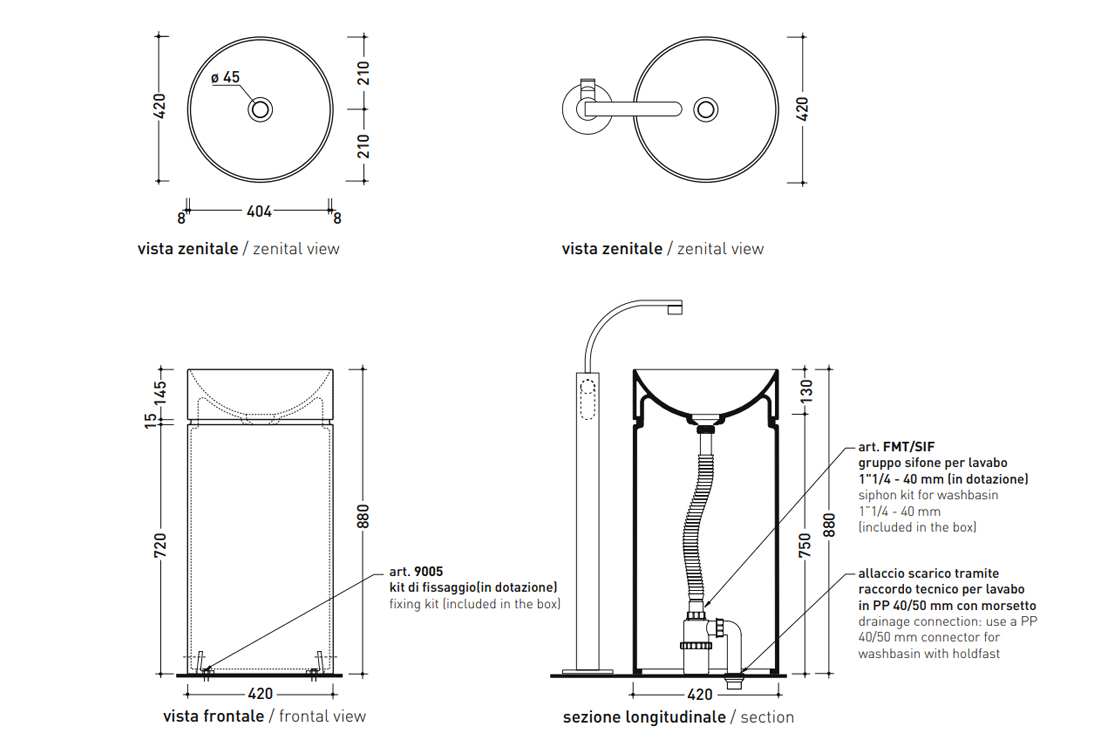 MONOTWIN SLIM Умивальник 42x90 підлоговий з вертикальним зливом (MTC42C)