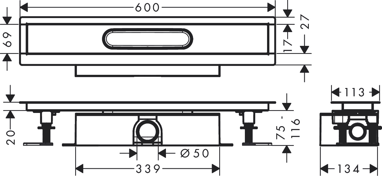 Монтажний комплект для душових трапів d50 uBox universal 600 мм (56022180)