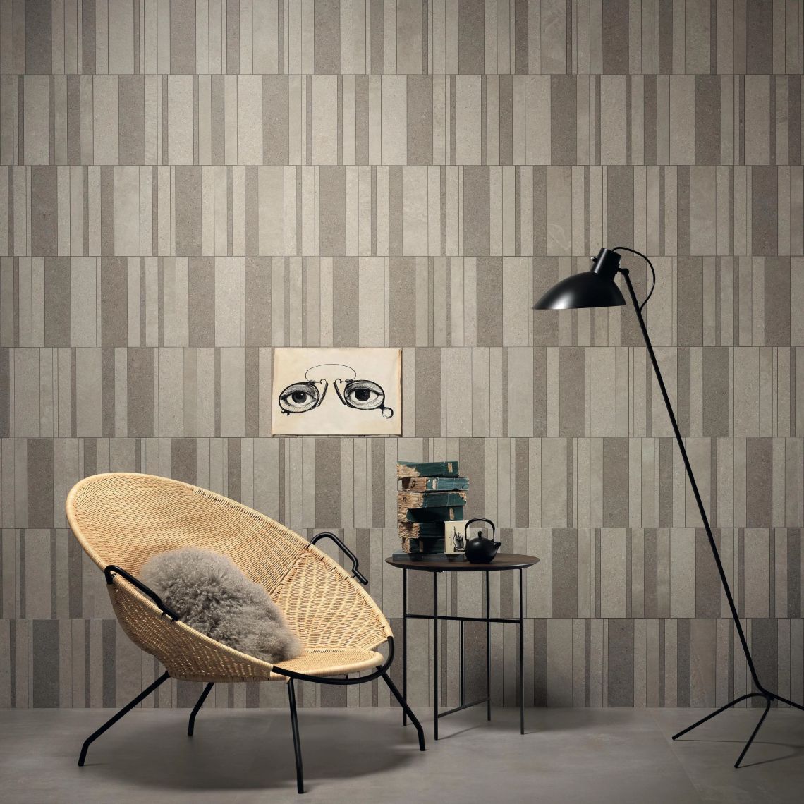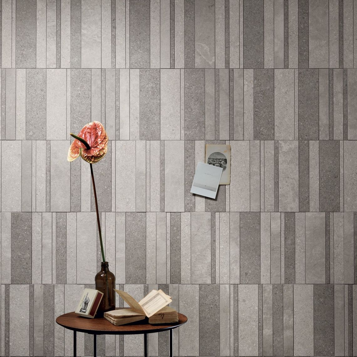 Керамограніт Canone inverso - композиційна простота, яка як жаккард при уважному розгляді розкриває його складну хроматичну композицію. Таким чином, дизайнер резюмує концепцію: «Чотири композиції колекції Canone Inverso — це варіанти моделі, схема, яка складена і зібрана наново, щоб дати життя гармонійним відносинам, які, як і в партитурі, формуються шляхом збирання різних нот чи форм, які його складають». Проект поділено на чотири мозаїки з керамограніту, натхнених світом мінімального бетону та каменю. Кожен модуль із чотирьох мозаїк Canone Inverso має свою особливу геометрію, в деяких випадках навмисно асиметричну для створення нових візерунків. Кожен модуль також представляє реальний колір колекції, отриманий шляхом змішування кольорів близьких відтінків, вибраних із пропозицій з бетонним ефектом і з мінімальним ефектом каменю в асортименті Atlas Concorde: Boost and Dwell (ефект бетону), Raw (бетон-штукатурка). ефект), Arkshade (мінімальний ефект бетону), Kone (мінімальний ефект каменю).