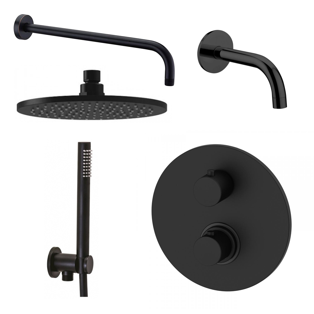 Набір для душової системи прихованого монтажу Paffoni з термостатом, верхнім та ручним душем, зливом, чорний (KIT LIQ019NO B)