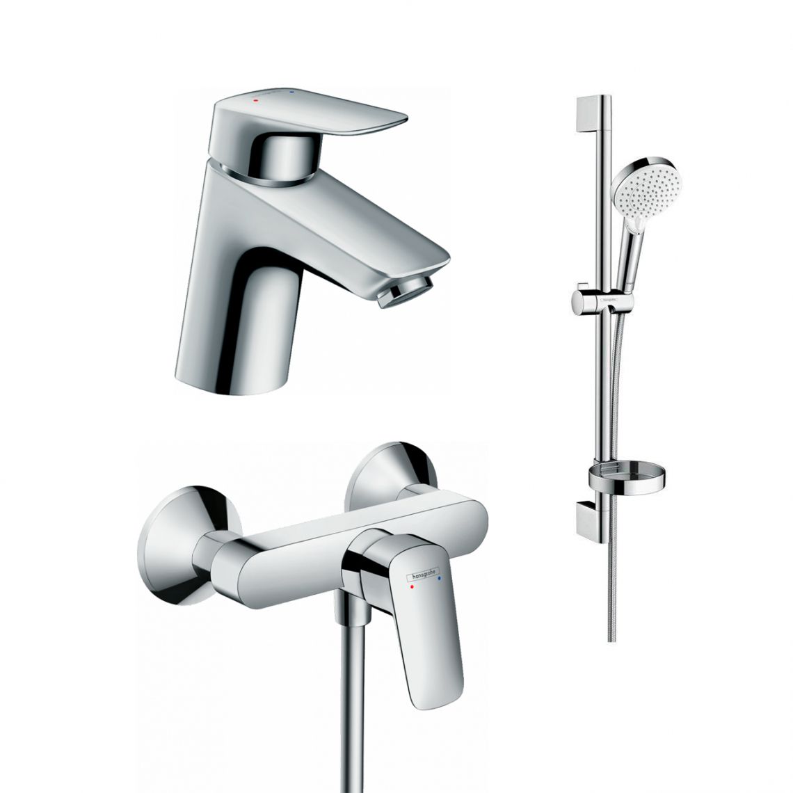 - душовою набір Hansgrohe Crometta Vario 26553400 (типи струменя Rain і IntenseRain, перемикання типів струменя за допомогою обертового душового диска, розмір душового диска 100 мм, з боку душа завзятий підшипник, що запобігає перекручування душового шланга, кут нахилу може змінюватися до 45 °, повністю хромований утримувач душа, максимальна витрата води (при 3 бар) 14 л / хв, ширина штанги 22 мм, хромовані настінні кріплення з пластику)