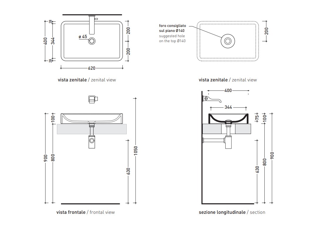 NILE 62 Умивальник на стільницю прямокутний Bianco (NL62A)