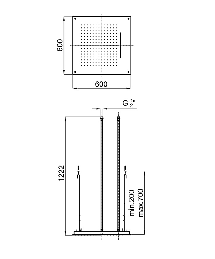 NK LOGIC Верхній душ вбудований 60х60 см: функції: дощ 16 л/хв, каскад 22 л/хв, підключення 1/2" (100137920)