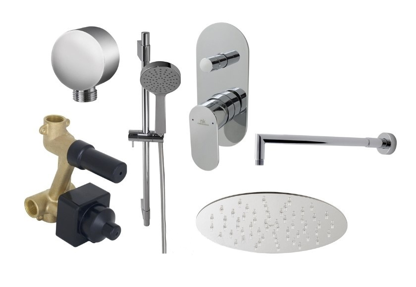 PACK ROUND SHOWER HEAD 20CM VALVE INOX, к-т для душу, хром (100279796)