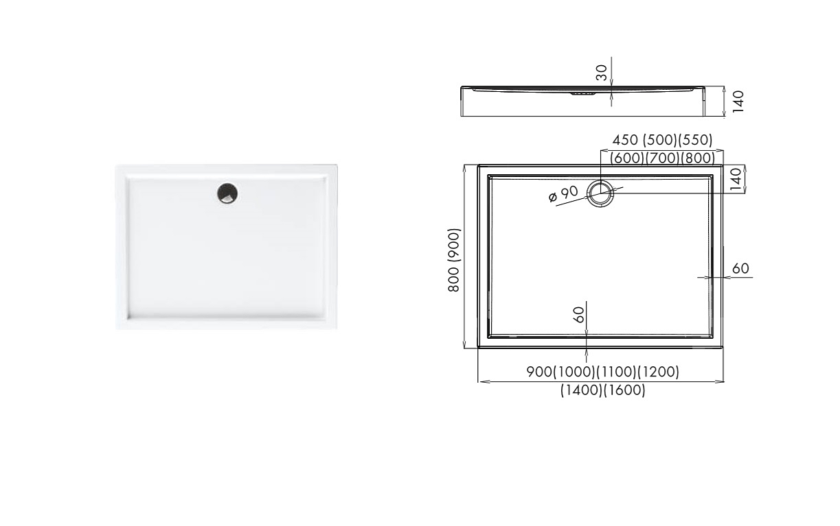 Піддон акриловий прямокутний JAMAICA 90x140x14 (3.8187)