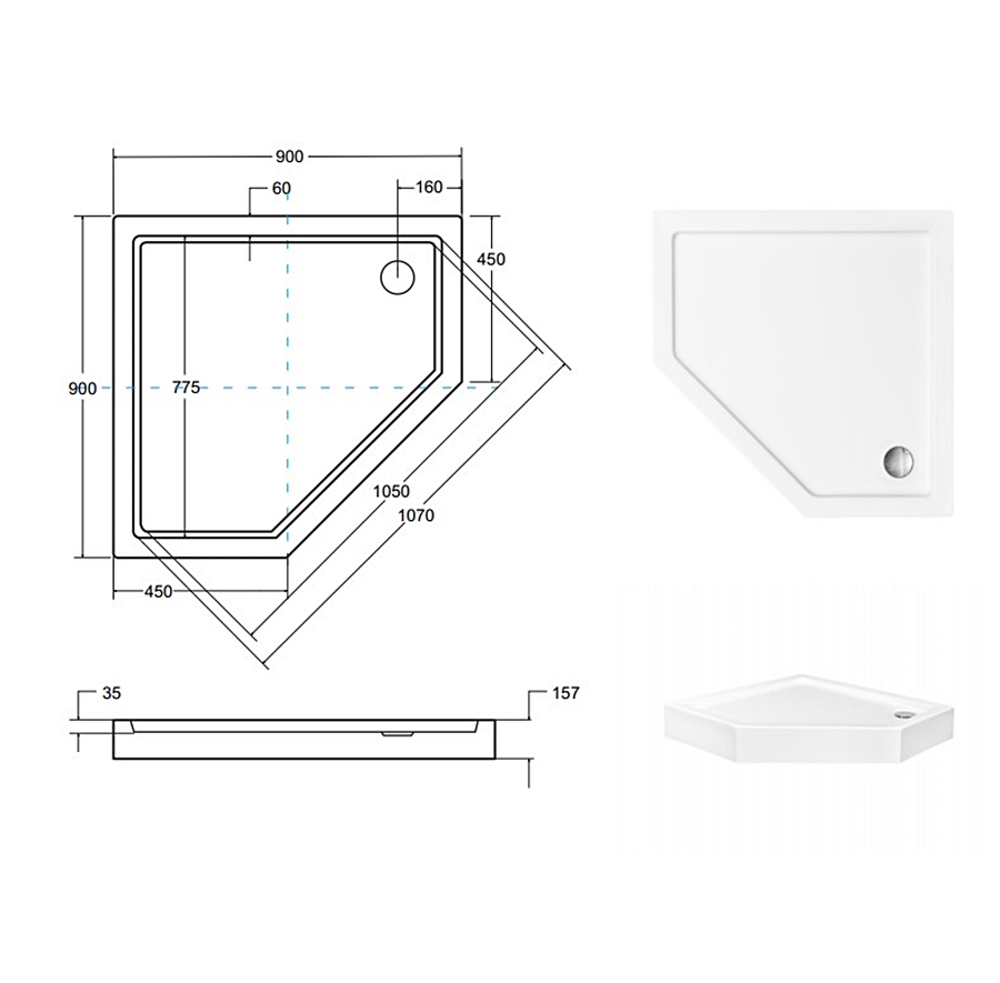 Піддон п'ятикутний BERGO 90х90х6 см з інтегрованою обудовою