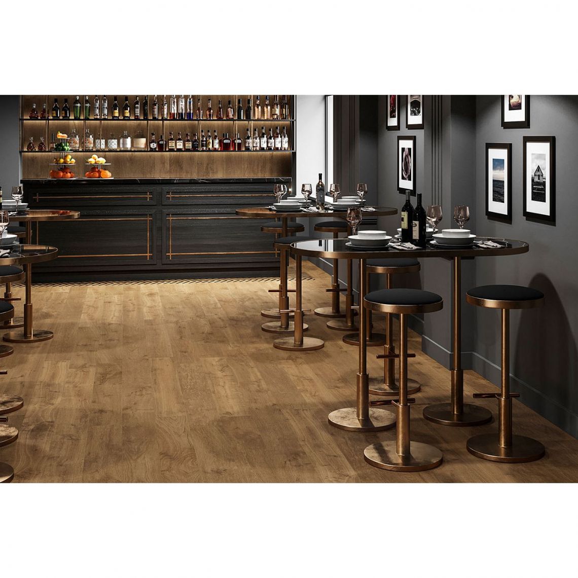 Зміни кольору дерев'яного підлогового покриття, викликані впливом світла протягом тривалого періоду часу, були реалістично відтворені в плитці з імітацією дерев'яних плит і рейок, в якій відтінки варіюються від інтенсивного коричневого кольору до світлого пшеничного, від медового до бурштинового.