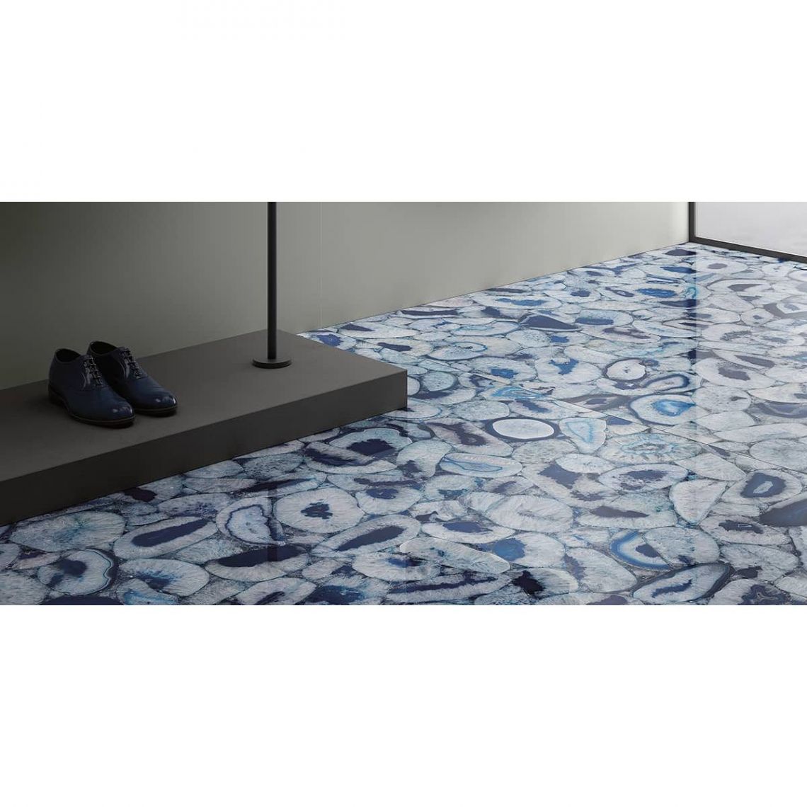 Неправильні і концентричні форми, багаті контрастом і відтінками, дають плитці відчуття глибини і відтворюють напівпрозорий ефект, характерний для агату.