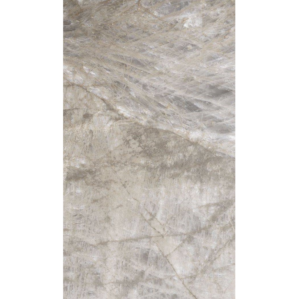 Керамограніт Fiandre Marble Lab Quarzo Greige Luc. (AL196X864) - кристали, які з часом з'єдналися і об'єдналися в напівпрозорий матеріал. Так само, як бліді вуалі на полотні, де наступні шари кольору перекриваються, залишаючи нижележащие відтінки видимими, кристали формуються один над іншим, створюючи нюанси, які виділені жирним "шрифтом" або розрізняються в різних відтінках.
