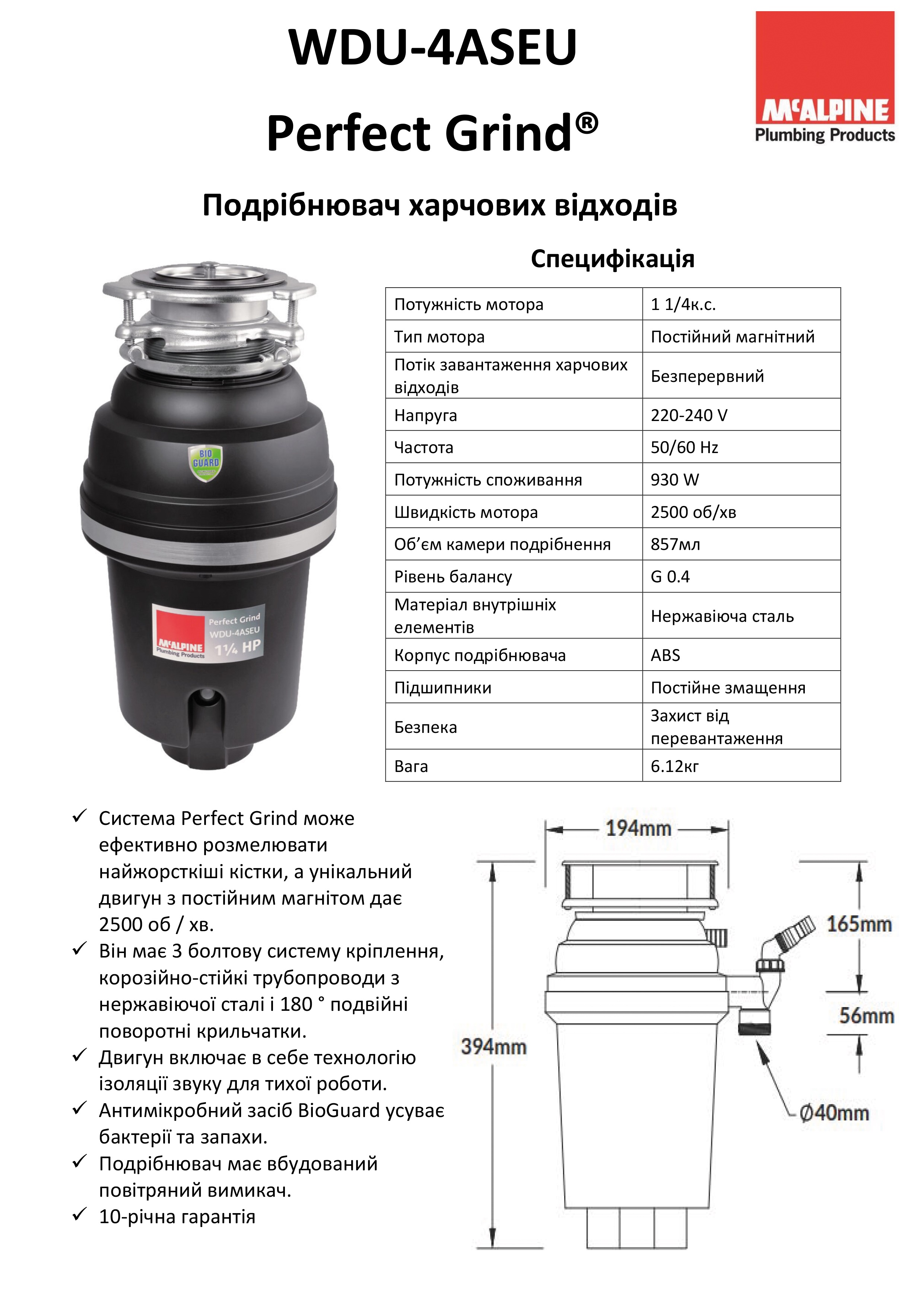 Система Perfect Grind може ефективно розмелювати найжорсткіші кістки, а унікальний двигун з постійним магнітом дає 2500 об/хв.Подрібнювач має 3 болтову систему кріплення, корозійно-стійкі трубопроводи з нержавіючої сталі і 180 ° подвійні поворотні крильчаткиДвигун включає в себе технологію ізоляції звуку для тихої роботиАнтимікробний засіб BioGuard усуває бактерії та запахиПодрібнювач має вбудований повітряний вимикач10-річна гарантія