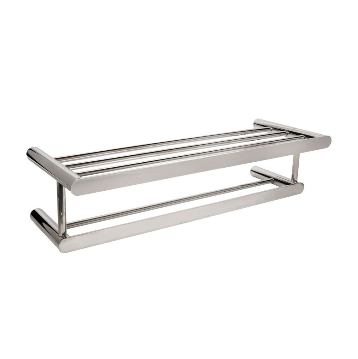 - Сушка для рушників для ванної кімнати з полицею, з чотирма точками кріплення і системою прихованого настінного кріплення, виготовлений з нержавіючої сталі AISI 304 серії Aura від Mediclinics.