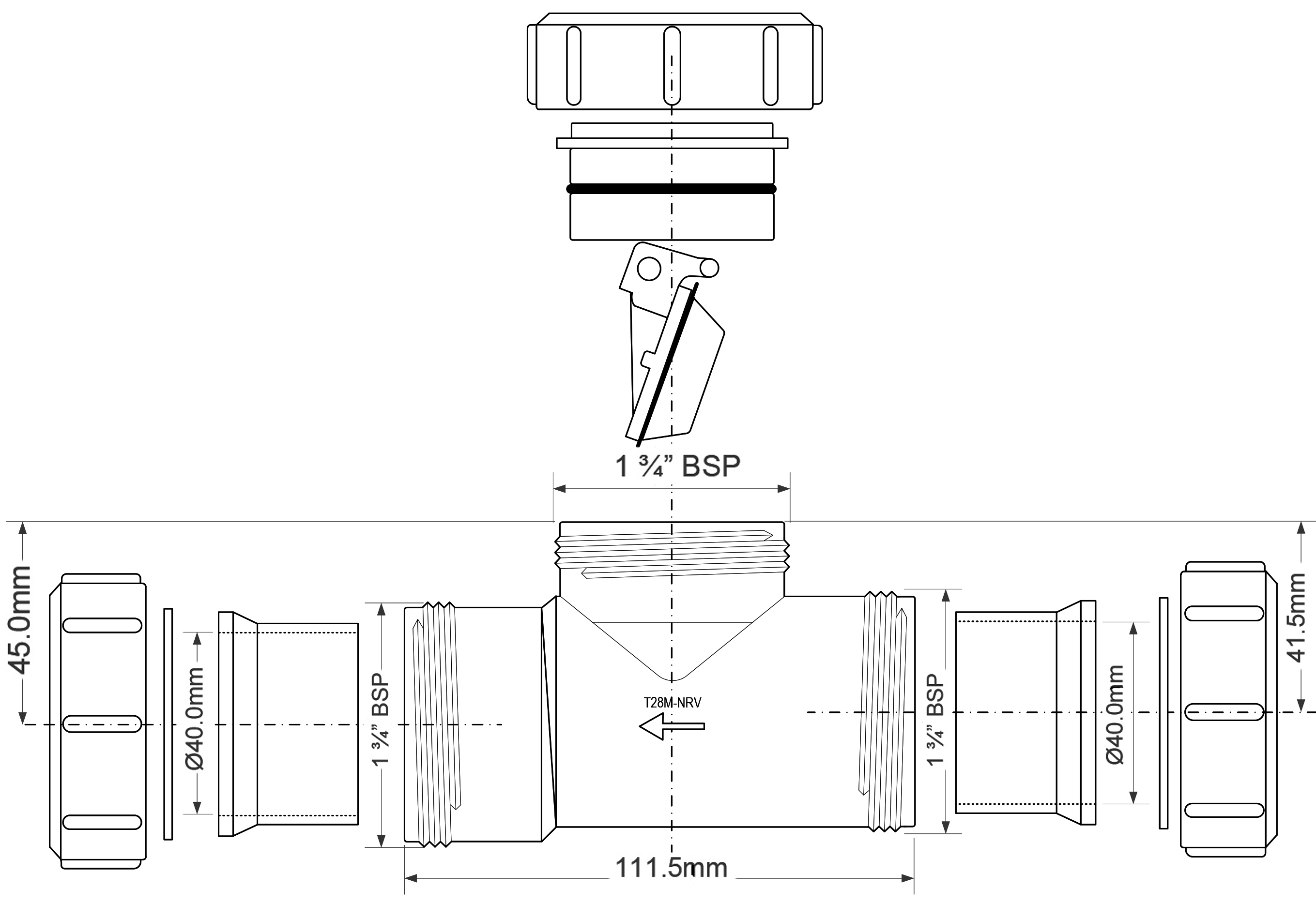 Продовжувач зі зворотним клапаном 40 мм T28M-NRV-40