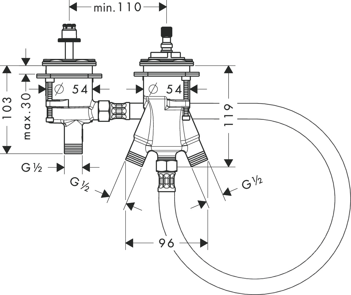 Прихована частина для термостатичного змішувача на ванну на 2 отвори (15486180)