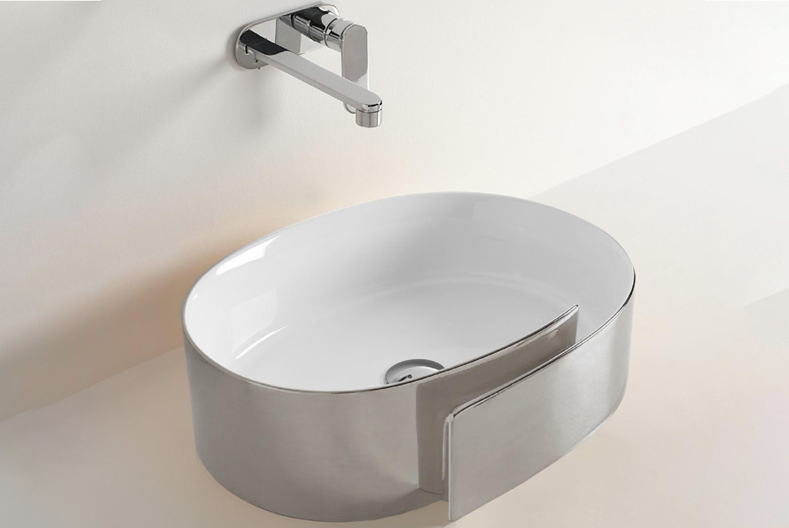 Колекція Roll від команди японських дизайнерів, під керівництвом Окі Сато, являється продуктом нестандартної геніальної творчості, яка не нехтує функціональним аспектом виробів. Представлений накладний умивальник, в оригінальному виконанні, ззовні нагадує ніби скручений лист паперу, що утримує воду. Такий дизайн дає волю експериментам для створення виняткового інтер'єру ванної кімнати з яскраво вираженою індивідуальністю.Умиавальник білий із зовнішнім обідком в кольорі платина