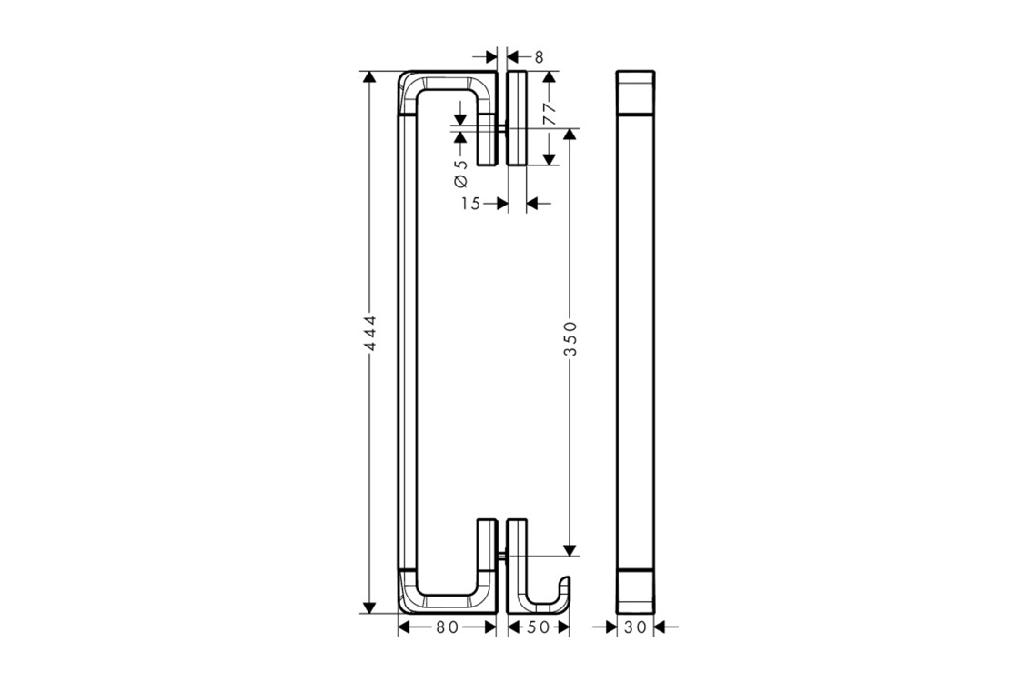 довжина: 444 мм,підходить для скла, товщиною 6-12 мм,відстань свердління: 350 мм,можна використовувати одночасно як тримач для рушників.