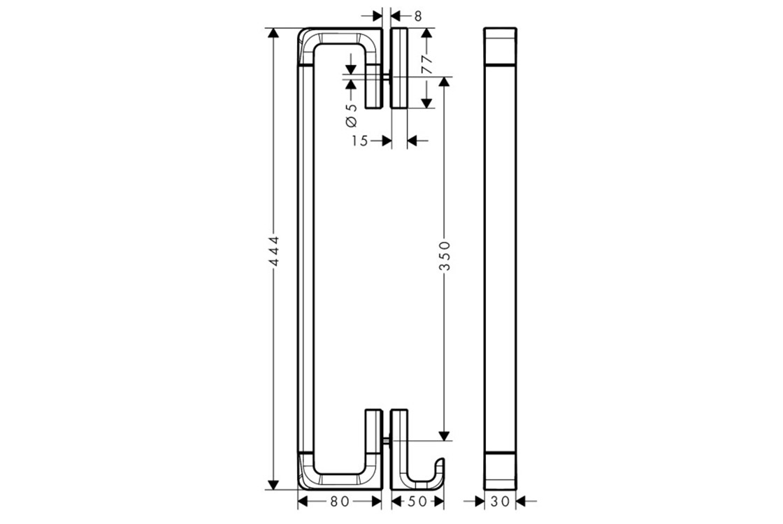 довжина: 444 мм,підходить для скла, товщиною 6-12 мм,відстань свердління: 350 мм,можна використовувати одночасно як тримач для банних рушників.