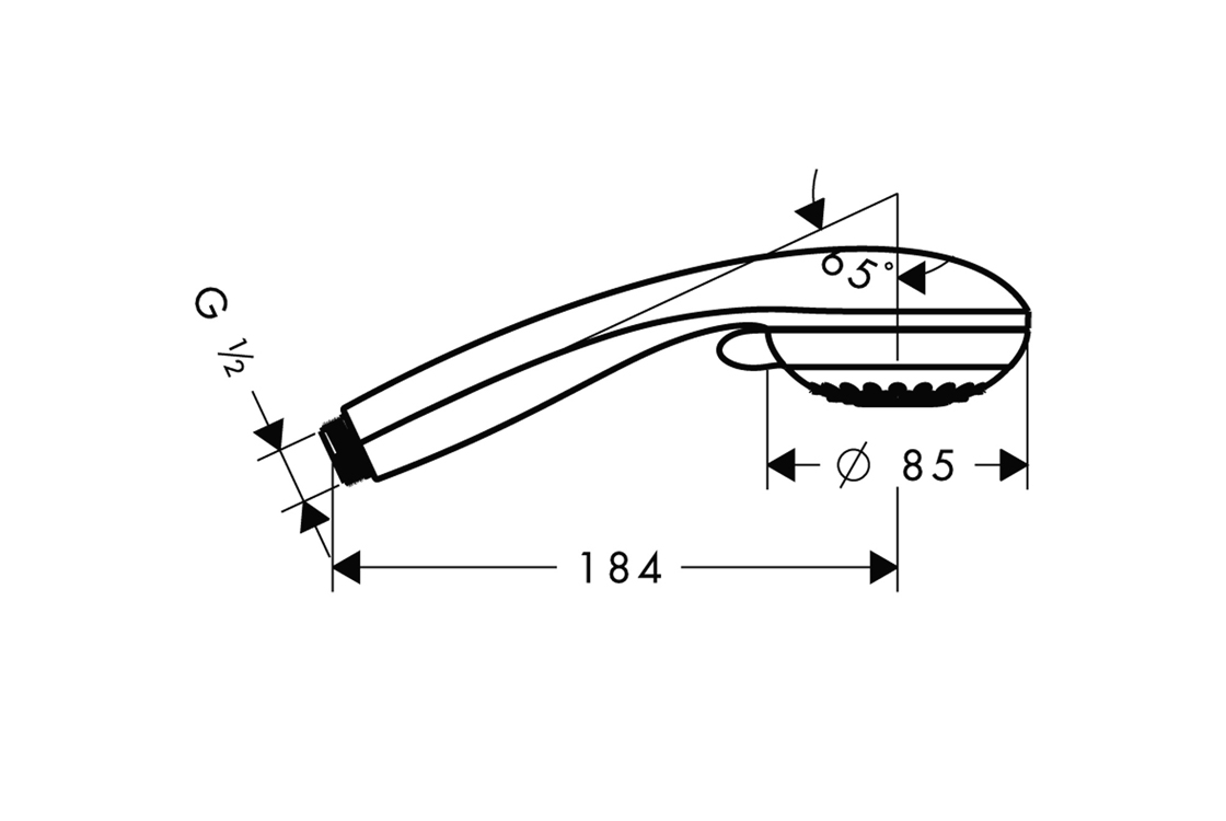 HANSGROHE розмір душової лійки 8,5 см,тип струменя - звичайний і Vario,регулювання типу струменя обертанням диска