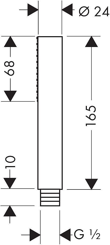 Axor розмір душової лійки: 68х24 мм,тип розпилення: Дощ,максимальна витрата при 3 барах: 8 л/хв,мінімальний тиск потоку: 1 бар,сітка, що промивається,з'єднувальна різьба G ½,приєднувальний розмір: DN15,підходить для проточних водонагрівачів.