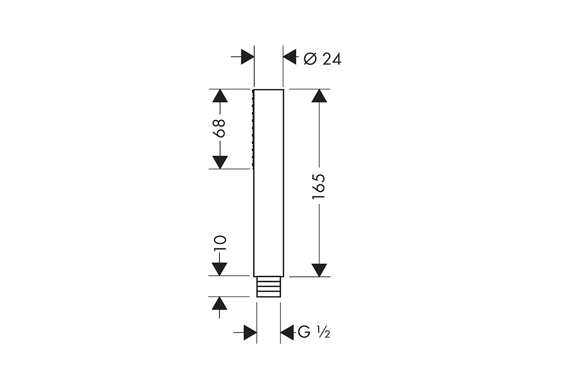 Axor розмір душової лійки: 68х24 мм,тип розпилення: Дощ,максимальна витрата при 3 барах: 8 л/хв,мінімальний тиск потоку: 1 бар,сітка, що промивається,з'єднувальна різьба G ½,приєднувальний розмір: DN15,підходить для проточних водонагрівачів.