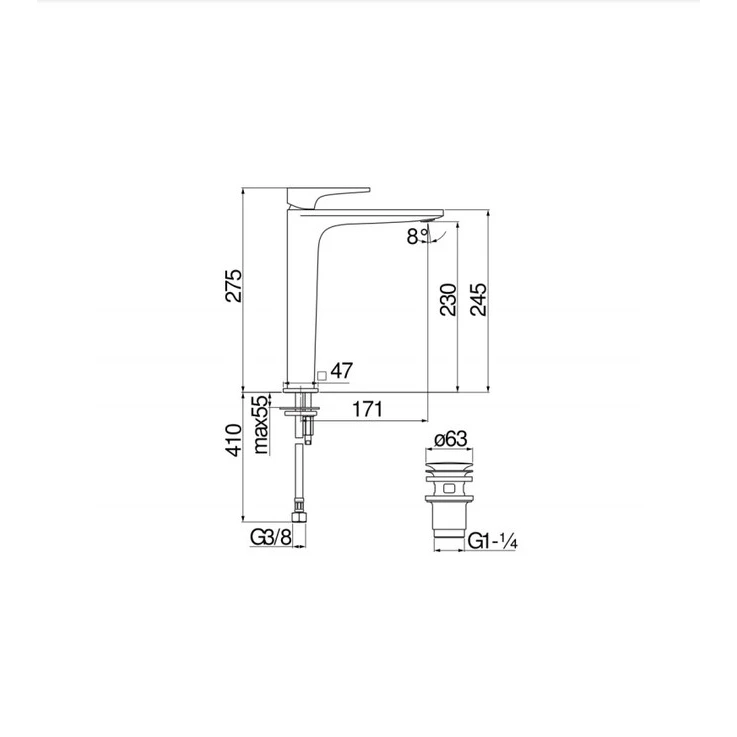 SE124128/2BM Змішувач для умивальника високий з донним клапаном чорний мат Nobili ІТАЛІЯ