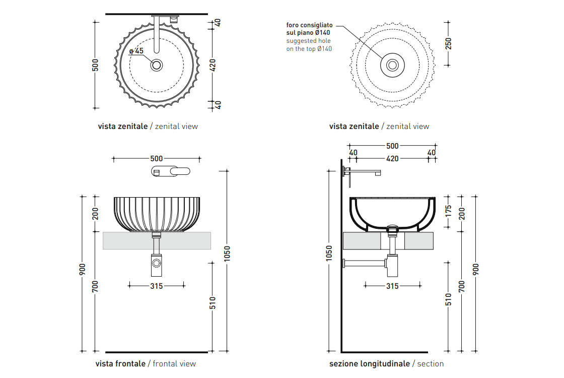 SETTECENTO Умивальник на стільницю D50, Rosso Rubens (SE50A)