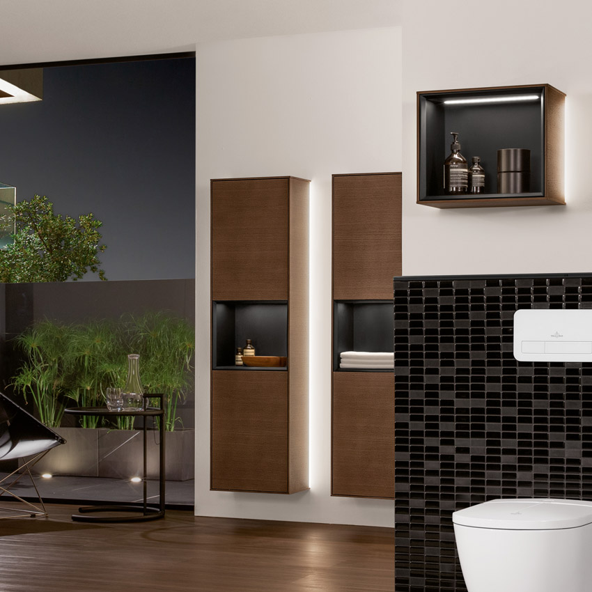 Шафа-пенал Villeroy & Boch Finion (G470HFPD) з двома дверцятами і однієї відкритої полицею.