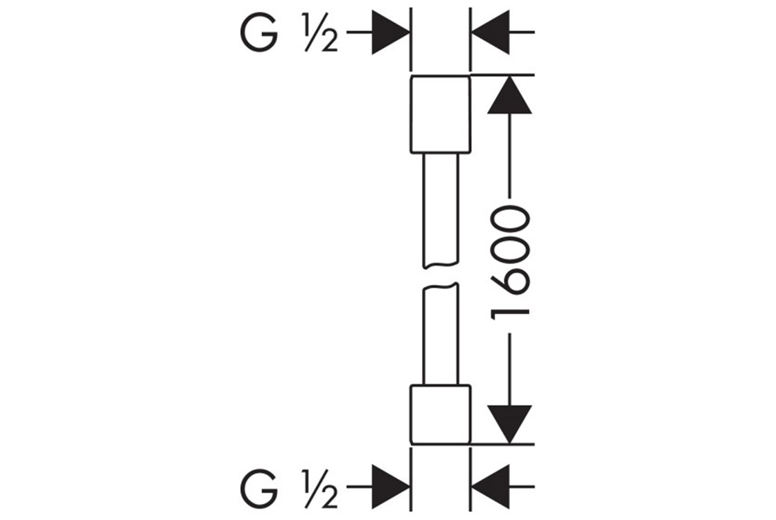 Axor Шланг для душу з пластиковим покриттям та металевим ефектом. Довжина 1,6 м, циліндрична гайка на обох кінцях. Поворотний з'єднувач запобігає заплутуванню шланга, захищений від перегинів.