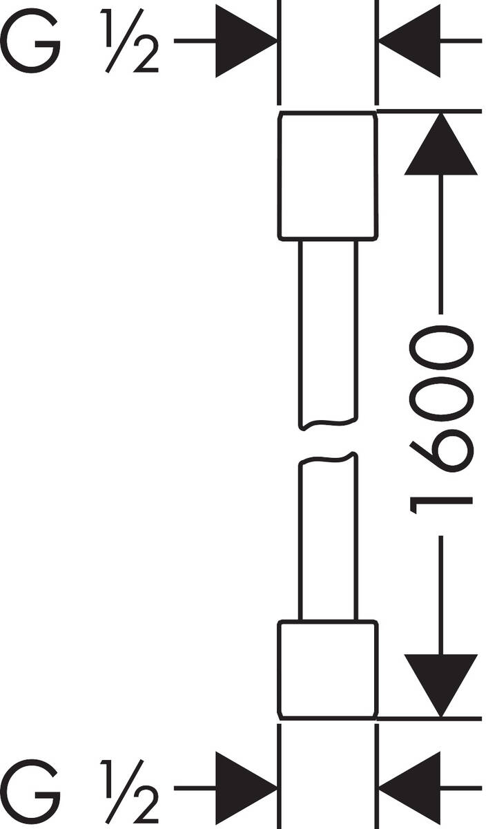 Axor Шланг для душу з пластиковим покриттям та металевим ефектом. Довжина 1,6 м, циліндрична гайка на обох кінцях. Поворотний з'єднувач запобігає заплутуванню шланга, захищений від перегинів.