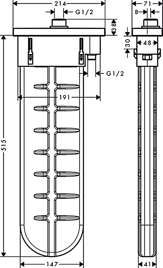 HANSGROHE складається з: шлангового боксу, душового шланга, накладкипідходить для монтажу на бортик або плитку,1 функція,sBox для тихого, плавного та захищеного напряму шланга,приєднувальний розмір: DN15,не вимагає додаткового технічного обслуговування,ширина борта ванни не менше 100 мм,діапазон затиску: 0 - 30 мм,максимальна довжина висувного ручного душу 1,45 м,знімний для обслуговування в будь-який час,захищений від зворотного потоку, відповідно до DIN EN 1717,максимальна витрата при 3 барах: 9,5 л/хв,необхідне додаткове обладнання: прихована частина SBox Rim врізна в борт ванни (13560180) (не входить в комплект).