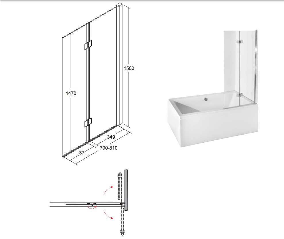 Універсальна модель (ліва/права), Безпечне скло 6мм, Висота 150 см Ширина 80 см