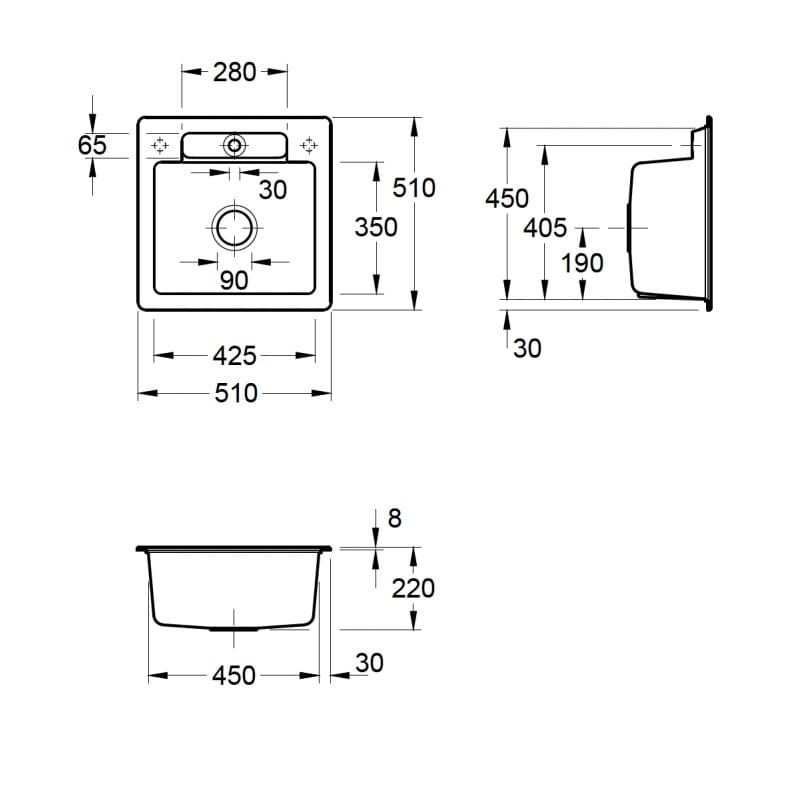 Відгуки про "SILUET 50 S Кухонна мийка 51x51x22 см без отвору під змішувач (334501R1) White Alpine CeramicPlus"