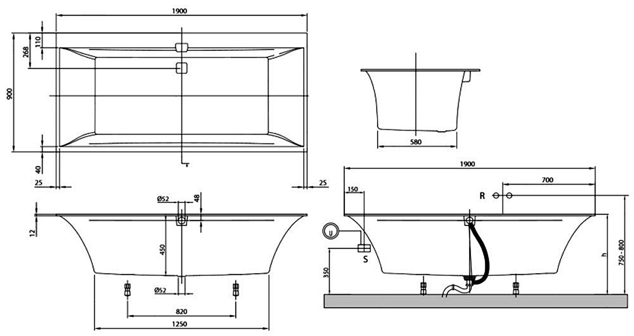 Відгуки про "SQUARO EDGE 12 Duo Ванна кварил 1900*900 з ніжками та сифоном (UBQ190SQE2DV-01)"