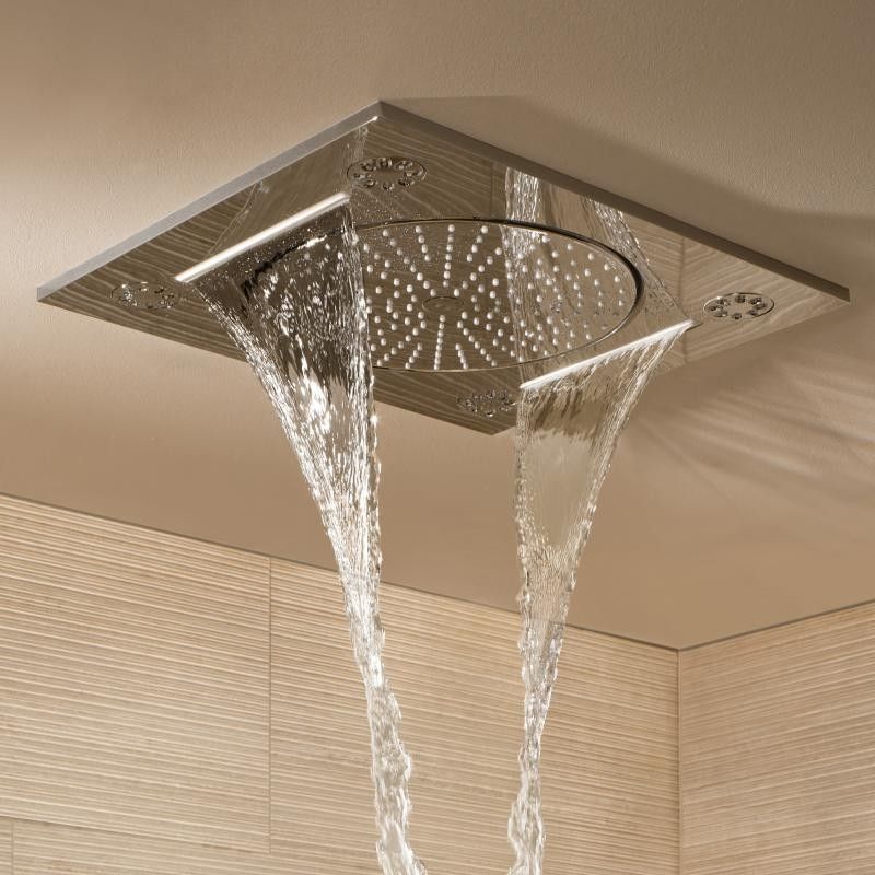 Grohe Якщо Ви хочете насолоджуватися рясними потоками дощу прямо в своїй ванній кімнаті, Вам не обійтися без приголомшливої колекції душів GROHE Rainshower®. На дисках душів розташована величезна кількість форсунок, завдяки чому створюється ефект дощу.